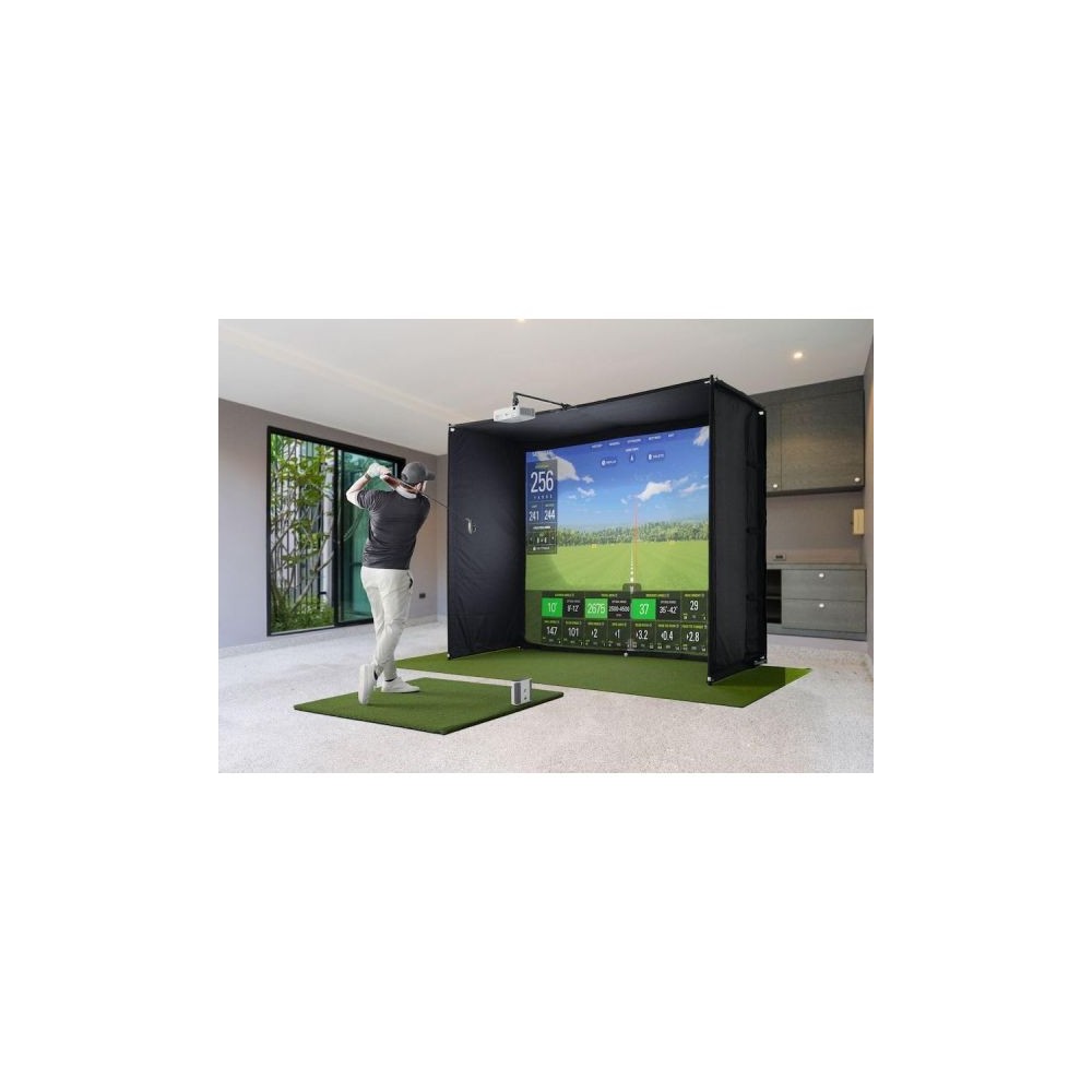 SkyTrak+ 골프 시뮬레이터 스튜디오 프로 패키지 런치 모니터 보호 실드 인클로저 소프트웨어 히트 매트 프로젝터 및 볼 트레이