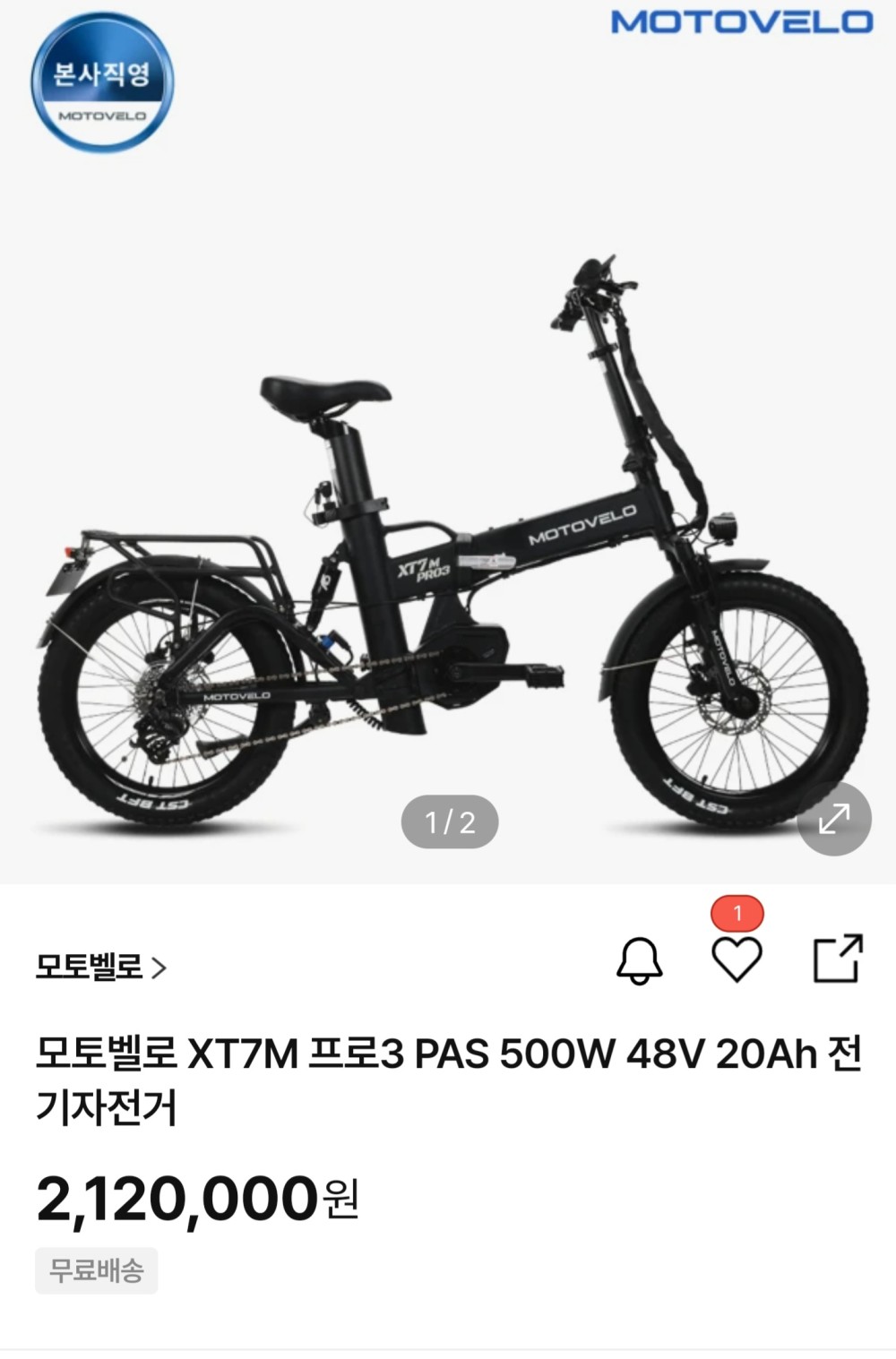 모토벨로 XT7M 프로3 48v 20Ah 전기자전거입니다